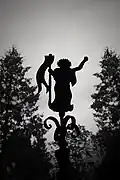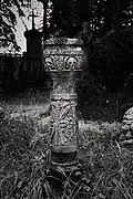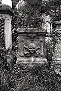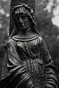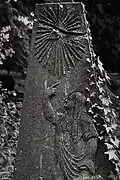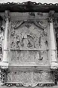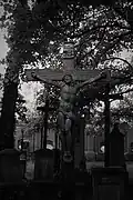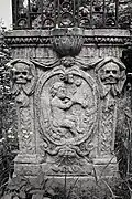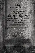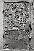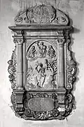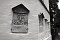 The graveyard surrounding St. Peter's includes three free-standing chapels: a Kapelle Unserer Lieben Frau (Chapel of Our Dear Lady), perhaps originally Romanesque, with a 15th-century ossuary;[11] the Agnes-Bernauer-Kapelle, the burial place of the like-named secret wife of Albert III of Bavaria, executed on charges of witchcraft;[12] and the Totenkapelle (Chapel of the Dead), built in 1486.[13] The latter is perhaps of the greatest artistic significance, on account of its extensive cycle of paintings representing the Totentanz (Dance of the Dead), created by the Rococo artist Felix Hözl (died 1774), a resident of Straubing, in 1763. The cycle is of note as an 18th-century treatment of a predominantly medieval theme.[14]