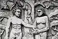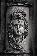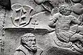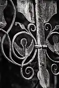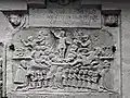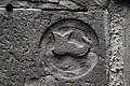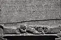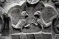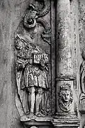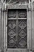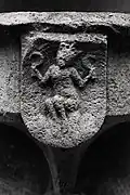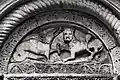 The south portal is somewhat more mysterious. It portrays two animals, at left perhaps a griffin[7] or another dragon,[8] and at right a lion. The two beasts may likewise be engaged in battle.[9] An opposition between good and evil, similar to that on the west portal, is likely intended, perhaps with reference to medieval animal stories such as those found in the Physiologus.[10]