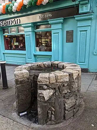 St Winifred’s Well was most likely built between 1680 and 1720 when Eustace Street was laid out. Its name, referring to the Welsh Saint Winifred, is probably explained by the presence of Welsh and English merchants in the area.[3]
