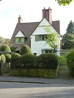 The opening of Moseley railway station in 1867 started a property boom in Moseley, which was accelerated by the arrival of steam driven tramway services to Birmingham along the Alcester Road provided by the Birmingham Central Tramways Company Ltd which started operating on 29 December 1884.[2] Moseley was an attractive location for the prosperous middle-classes, as it was situated south of Birmingham upwind of the industrial smoke of the city. The conservation area comprises a number of streets developed from the 1860s to the 1930s with a wide variety of architectural styles ranging from Victoria and Edwardian villas, and Arts and Crafts houses built by local architects such as William de Lacy Aherne and J. Brewin Holmes.
