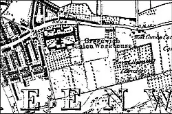 The hospital developed from an infirmary created for the Greenwich and Deptford workhouse, which opened in 1840 on a site on the east side of Vanbrugh Hill, south of its junction with Woolwich Road; the architect, Robert Palmer Browne (1803-1872), later described his design as "plain but cheerful and almslike".[2] The Greenwich Union Infirmary opened in 1874,[1] consisting of two 3-storey pavilions (housing 400 patients) and a 4-storey administration and staff accommodation block, built on a 3-acre site south of the workhouse at a cost of £35,000.[3][4][5]