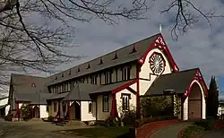The building was modified and enlarged a number of times between 1862 and 1986. The first addition happened around 1862 when a nave was added. At this time the original building was divided into two halves with a new nave being built between the two halves. This turned the original building's two halves into the transepts of the now larger church. A further addition was made between 1892 and 1893 when the nave was widened to allow for more seating. The church moved in 1986 from its original site opposite the Christchurch Hospital to its current home in the grounds of Rangi Ruru School.[2]