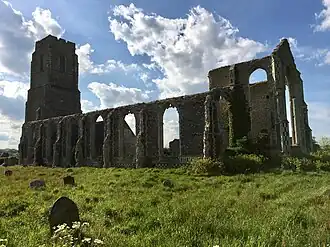 St Andrew's Church is a partly redundant Anglican church in the hamlet of Covehithe in the English county of Suffolk. It is recorded in the National Heritage List for England as a designated Grade I listed building,[1] Part of the church is in ruins and this is under the care of the Churches Conservation Trust.[2] The church stands on a lane leading directly towards the sea, in an area of coast which has suffered significant ongoing erosion.[2][3] The parish of Covehithe has been combined with neighbouring Benacre.[4]