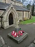 The Skegby War Memorial, to the left of the entrance to the Church, is Grade II listed by the Department for Digital, Culture, Media and Sport as it is of special architectural or historic interest.[2]