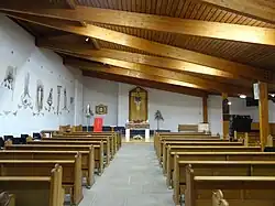 St. Bernard began in the year 1892 when a Belgian Franciscan Friar, Father Thaddeus Hermans, looking to open a college for young men wishing to become Franciscans, arrived in Buckingham for the first time on the Feast of the Ascension. He rented a cottage in Elm Street, where he said the first Mass, finally settling on 9 Chandos Road to set up his first chapel. Later he was able to obtain the site on the London Road and by the end of 1895 he had built his college. Few Catholics lived near Buckingham then but in 1900 the registers record twelve Baptisms. The college was put under the patronage of St Bernardine, a much revered Franciscan, and so the parish of St Bernardine was set around the college. The college chapel was blessed and opened for public worship in 1912.[1]