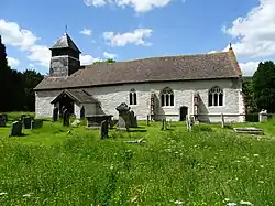 The village of Glascwm lies in a remote part of mid-Powys, some 9m to the north-east of Builth Wells.[1] It is probable that the earliest structure on the site of the present church was a clas church, traditionally dating back to the 6th century.[2] Gerald of Wales recorded that the clas church held a handbell, which had supposedly belonged to St David, held magical powers and was known as a 'bangu'.[3] The present church stands in a circular churchyard in the centre of the village. Cadw dates it to the 14th century.[4] In 1891 restoration was undertaken by Ewan Christian.[4]
