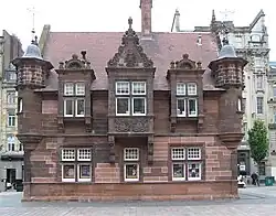 Above ground, the original station building housed both a booking office and the headquarters of the original Glasgow District Subway Railway Company. This was (and is) the subway's most distinctive building – an ornate, Flemish Renaissance, late-Victorian red sandstone structure; designed by James Miller in 1896.