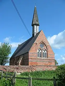 The church is built of red brick, with dressings in blue brick and stone, and a slate roof. It consists of a nave and a chancel in one cell, and an added west porch. On the roof is a square wooden bell turret with an octagonal shingled spire. On the north and south walls are buttresses, and recessed pointed arches containing circular windows. Inside, there are a wooden chancel screen, altar, reredos, altar rail, octagonal pulpit and pews.[2][4]