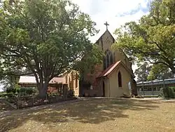 New school buildings are situated close to the southern side of the church and a c. 1980 brick presbytery and church office are situated to the north-east.[1] These are not included within the heritage listing.[1]