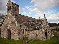 The architectural historian John Newman describes the building as "late medieval" but with evidence of its earlier origins.[2] The church is small, comprising a nave, a chancel and a porch[1] together with a "gabled double bellcote".[2]