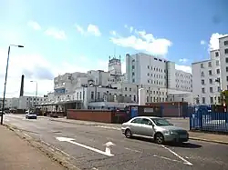Less than a month later, the hospital was damaged in a bombing raid by a parachute mine.[1] John Major, the former Prime Minister was born in the hospital in 1943.[3] Further damage was caused in later raids and the hospital was struck by two flying bombs in June 1944.[4] St Helier Hospital remained functional throughout the War and was painted green to make it less visible to German bombers in the latter years of the war.[5] It joined the National Health Service in 1948.[1]