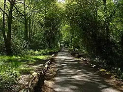 The oldest building is The Old Cottage, a 16th century cottage with much of its original core intact. In the ward as a whole no other buildings from the two centuries after this exist.[7] No church is in the suburb of Hook Heath. Clay in the east rises into heath of the Bagshot Formation; a town-side residential hill (other than Fisher's Hill by the south of Woking Golf Club) is named Wych Hill and has a number of streets named after it as well as all the commerce apart from the golf club.[8]