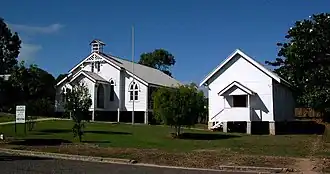 St John's Anglican Church is of aesthetic significance for its use of Gothic stylistic influences within the Queensland vernacular idiom of high-set timber buildings, the result being a balanced, visually pleasing design incorporating traditional European church motifs and Queensland-style deep verandahs. St John's Anglican Church Precinct has a picturesque quality engendered from the consistency of scale, form and materials and the lineal arrangement of the group of simple timber buildings in a garden setting. The place makes an aesthetic contribution to the streetscape, visually complementing the state school across the road.[1]