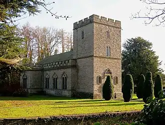 The original church was probably constructed in the 14th century.[3] Arches from the interior of this building were removed in the 18th century to form an eye-catcher in the grounds of Shobdon Court, the Bateman family home.[1] The Shobdon Arches,[3] as they are known, have subsequently "weathered disastrously."[1] Between 1749 and 1752, John Bateman undertook a complete rebuilding in the Gothic Revival style.[3] The architect is unknown.[1] Bateman's uncle was a friend of Horace Walpole and many members of their circle have been suggested as possible designers, including William Kent, Daniel Garrett, Stephen Wright, John Vardy, Richard Bentley, William Robinson and Henry Flitcroft.[1] Jenkins himself favours Richard Bentley.[2] The style is clearly influenced by the contemporary Strawberry Hill House and the works of Batty Langley.[1]