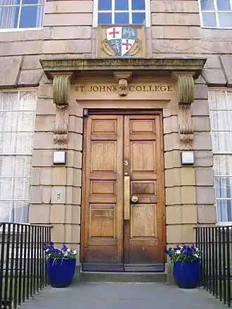 St John's College is one of the recognised colleges of Durham University. The college was established in 1909 as a Church of England theological college and became a full constituent college of the university in 1919. The college consists of John's Hall for students studying on any university course and Cranmer Hall (with its own master or warden), an Anglican theological college in the open evangelical tradition. All part time and distance learning postgraduate students reading for theology are automatically assigned to St John's.[1] Started as a men's college, it was the first Church of England theological college to train men and women together, where it subsequently became mixed.