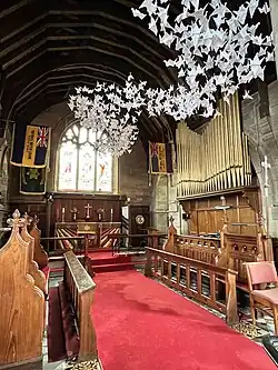 The church contains a pipe organ by Abbott. The organ comprised two manuals and pedal with 14 speaking stops and was erected at a cost of £350. The new organ was opened on 28 November 1888 by Arthur Francis Smith of Derby.[13] A specification of the organ can be found on the National Pipe Organ Register.[14]