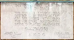 St Katherine Westway is a Church of England parish church in Hammersmith, west London.[1] Its original dedication was St Catherine Coleman, named after the church of St Katherine Coleman in the City of London, whose sale funded its construction in 1922, to a design by Robert Atkinson - it was assigned a parish in 1929.[2][3] Westway refers to Westway, the road beside which it stands. The original church was destroyed by bombing on 14 September 1940 and the foundation stone for the present one was laid on 25 October 1958.