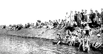 Together with most of the Munno Para West area, St Kilda came under the jurisdiction of the new District Council of Salisbury (later City of Salisbury) in 1933.[13] After floods occurred in 1948 and 1957, the three islands present since the first European settlers arrived a century earlier were extensively modified. Salisbury Council began building up the area, expanding seawalls and reclaiming additional land by dumping earth spoil.[4]: 9–11
