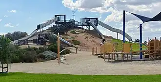 The playground, opened in 1982 and upgraded in 2016, was initiated by the Lions Club of Salisbury and funded through club fund-raising activities, City of Salisbury council matching funding, and government employment schemes.[19]