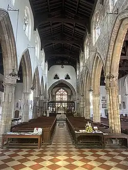 Whatever origin theory is preferred it is certainly the case that the church's history began before the Norman Conquest.[4] This was confirmed by the excavation of a small section in the eastern part of the nave. It revealed the Saxon foundation stones and these are now visible through a glass window in the floor in the nave.