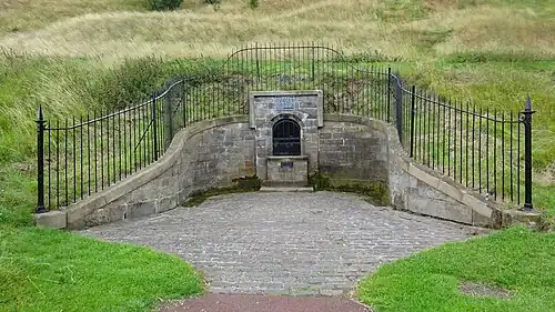 St Margaret's Holy Well was once a place of pilgrimage due to its medicinal waters[2] originally located in the Restalrig area of Edinburgh next to the present-day East Coast Mainline. The well's site was due to be partly built over by the North British Railway's St Margaret's railway works in 1859/60 and, due to its historical significance, it was carefully dismantled and moved stone by stone to its present location by the Society of Antiquaries Scotland.[3][4]