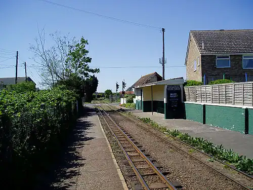 ![]() A view of St Mary's Bay station looking towards New Romney | |||||