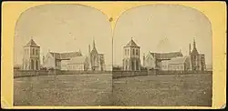 There were to be two intermediate stages. A temporary wooden church was constructed, which was also destroyed by fire in the summer of 1869. The third temporary provision was a sturdy brick building on the site, not of the cathedral but of St Mary's School, which it was to serve long after the present structure was in use.