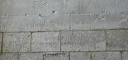 On the North wall of the West tower can be found some remarkable 14th-century graffiti which includes an inscription recording survival of citizens of Ashwell during the Great Plague known as the Black Death and an early inscribed drawing of the Old St Paul's Cathedral in London.[4] There is no clue as to who wrote the graffiti or to its exact date. On the wall of the church tower graffiti was inscribed, which reads: