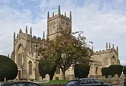 St Mary's Church is the main Anglican church in the town of Calne, Wiltshire, England. The church is large and cruciform, with a tall north tower; it stands in a triangular churchyard at the heart of the town. Begun in the 12th century, it is described by Pevsner as "the proud church of a prosperous clothiers' town".[2] The church is a Grade I listed building.[1]