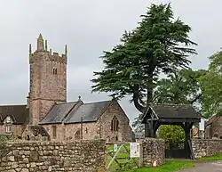 The church dates from the thirteenth century, or possibly even earlier,[2] with significant fourteenth century additions, including the tower,[3] and later renovation and re-building in the late nineteenth and early twentieth centuries. The original dedication was to St Hilary, which may refer either to St Eleri or to St Hilary of Arles.[2] The high tower, the short nave and lower chancel "create a memorable profile."[3] It is built in "the Gothic Decorated style."[4] The dressings of the windows and the tower are of Triassic stone. The tower has an external stair-turret, ending in an "odd, octagonal cap."[3] The interior contains some notable stained glass.