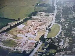 Aerial view of school site from c1983. Water Lane can be seen on the left, running almost parallel to Newbold Road. The Sixth Form block is under construction in the centre of the photo. Also note the original bus turning circle.