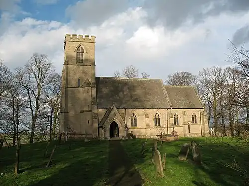 There was a mediaeval church in Cundall, which was described in 1823 as "mean and diminuitive", with a recently built brick tower. The building was demolished,[1] and a replacement was designed by Mallinson and Healey, and completed in 1852. The church was grade II listed in 1987.[2]