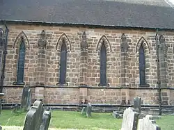 Dating from at least as early as 1220, the chancel is certainly the oldest part of the church. It is also the least altered part of the church; except for the rebuilding of the east wall in the 18th century, very little of it has been changed. A vestry, which has now been demolished, was once attached to the north wall,[6] and both the north and south walls contain lancet windows, of the Early English style. During extensive interior alterations in 1827–30, the carved oak chancel screen was broken up and dispersed among the parish, as were the oak choir stalls (the choir stalls and pulpit that exist today date from 1887 and 1879, respectively).[4][6]