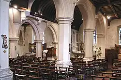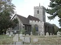 St Mary the Virgin Church is a partly medieval Grade II* listed flint church on Church Road in Hayes, Hillingdon.[1] The central portion of the church, the chancel and the nave, was built in the 13th century, the north aisle in the 15th century (as was the tower), and the south aisle in the 16th century, along with the lychgate and the south porch.[2]
