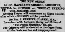 - ^ "The fine organ of St Matthew's Church". Leicester Guardian. Leicester. 2 August 1871. Retrieved 8 February 2025.