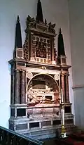 The church was dedicated to the Blessed Virgin Mary, the change to St. Nicholas only happening in later years after the English Reformation. The pinnacled entrance porch is richly carved and decorated with colourful statues and heraldic emblems. During the medieval period the south chapel area of the church contained a shrine to Thomas Becket, popular with pilgrims en route to Bromholm Priory at Bacton.