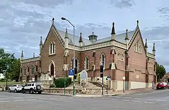 St Paul's Anglican Church is a Revival Gothic brick church completed in 1859, supervised by William Wakeling but probably to a design by Edmund Blacket. The side aisles were added in 1888/89, architect F.D.G. Stanley, and the western extensions were added in 1929, architect George Brockwell Gill.[1]