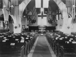 The northern transept did contain the organ and choir stalls, but the organ has been renovated and relocated to the southern transept. The southern transept is also extended to accommodate two vestries. Side aisles extend along both sides of the nave, terminating in small chapels at the western end. The church interior contains some fine timber joinery including sanctuary screens, communion rail and panelling of cedar and pine. The interior also contains numerous marble tablets and memorials, pulpit, baptismal font and lectern of fine quality. A chapel in the north-eastern corner of the nave honours Mavis Parkinson and contains an altar faced with New Guinea tapa cloth and a small bamboo cross in a glass case.[1]