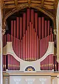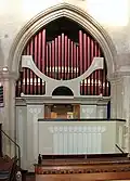 The organ was made by J. W. Walker & Sons Ltd in 1854 for St James' Church in Hatcham, London. When that church closed, the organ was moved here in 1982 and rebuilt. The small organ it replaced was transferred to Binham Priory church. The organ console and small set of pipes face south into the centre of the church while a larger set of pipes face west down the north aisle. The console, action and playing aids were refurbished and extended in 2012. It has 35 speaking stops across two manuals and pedals.