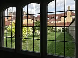 Grade II listing was applied to the bulk of the college's other central buildings in 1992.[13] This listing includes the college's main cloister built in 1899 to a design by Bodley,[13] the three lesser cloisters, the Benson Building (residential and teaching accommodation built late nineteenth century, probably designed by Clapton Crabb Rolfe),[13] the King Building (residential, teaching, and administrative accommodation, including the college refectory, the library, and the common room, also designed by Bodley),[13] and the two smaller chapels – the Founders Chapel, and the Ninian Comper designed House Chapel.[13]