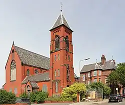 It is a Gothic revival church designed by Pugin & Pugin. It was built in 1888–89 using red brick from Ruabon, Wales.[1]