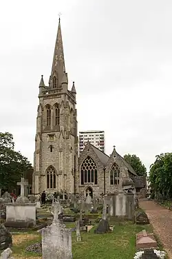 St Thomas of Canterbury Church, also known as St Thomas's, Rylston Road, is a Roman Catholic parish church in Fulham, central London. Designed in the Gothic Revival style by Augustus Pugin in 1847, the building is Grade II* listed with Historic England.[1] It stands at 60 Rylston Road, Fulham, next to Pugin's Grade II listed presbytery, the churchyard, and St Thomas's primary school, also largely by Pugin, close to the junction with Lillie Road in the borough of Hammersmith and Fulham.