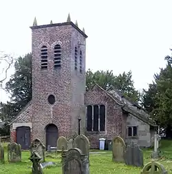 There is evidence of a Saxon church on the site before the Norman Conquest.[7] In 1187–90 Adam de Dutton founded a priory on the site for Norbertine canons but this was short-lived and there is now no trace of the priory. It is likely that the building of the present church began in the middle of the 13th century. Towards the end of the 16th century, the chancel area was remodelled and a pulpit, altar rails and communion table were installed. In 1645 the church was extensively altered and extended. The south and west walls of the nave were rebuilt and the roof of the nave was lowered. A small chapel and vestry with a stone foundation and timber framed wall were added to the south side of the chancel, while a stone extension was added to the north side. In 1711 the east end of the chancel was rebuilt and a brick tower was added at the east end of the church. In 1722 a gallery was built. Wooden floors were installed in 1813, the vestry was incorporated into the church and a new vestry was built onto the south side of the tower. In 1857 the chancel floor was tiled, the walls were painted with medieval designs and the timber supports and the chancel ceiling were plastered. Stained glass was added to windows and the gallery was removed. By 1880 the church needed major repairs, and because of this the new church was built and the old church ceased to be the parish church. Repairs were undertaken in 1894 for dry rot, in 1927 for death watch beetle and in 1958, again for death watch beetle. In 1971 the church passed into the care of the Redundant Churches Fund, the predecessor of the Churches Conservation Trust.[8][9]