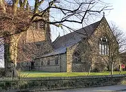 The newer church was built in 1883–85 and is located to the southeast of the village on the A6144 road. It is a Grade II listed building.[4] It is an active Anglican parish church in the diocese of Chester, the archdeaconry of Macclesfield and the deanery of Bowdon.[5] Its benefice is combined with that of St Peter, Oughtrington.[6]