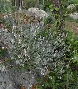 Stachys aleurites is a woody-based, perennial herb with many moderately long, simple stems (to 60 cm), growing on calcareous rocks near the Antalya coast at an altitude of 10–1275 m (there is a further record in 1950 from Mersin).[2]