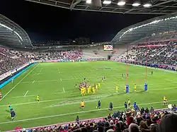 The stadium was opened in October 1925, and is named after the athlete Jean Bouin, the 5000 metre silver medalist from the 1912 Olympics.[2] It was the venue for the France Sevens leg of the World Rugby Sevens Series in 2005, 2006, and 2017–20. Before its temporary closure for an expansion project that began in summer 2010, it seated 12,000 people,[3] The stadium reopened in 2013 with seating for 20,000 spectators. To accommodate the expansion, Stade Français moved its primary home ground to Stade Sébastien Charléty, also in Paris, for 2010–11. Stade Jean-Bouin hosted the semi-finals, third-place match, and final of the 2014 Women's Rugby World Cup. Since 2018, the Paris Saint-Germain Féminines football team also plays its home matches at Stade Jean-Bouin. Stade Jean-Bouin hosted the opening ceremony of the 2018 Gay Games written and directed by Rodolph Nasillski.