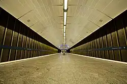 Parallel platform on Marienplatz; between the black pillars are passages to the actual platform