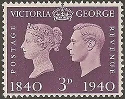 Stamp issued in conjunction with the Stamp Centenary Exhibition marking the centenary of the first postage stamp