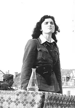 In May 1944, the Germans attempted to capture Josip Broz Tito in the Bosnian town of Drvar and Tomašević's battalion played an important role in defending Tito. While she was in Drvar, the British military photographer John Talbot took pictures of her that were dropped as leaflets over Europe to encourage resistance to the occupiers. The photos became widely known to European resistance fighters.[3] Her brother Duško was killed by Chetniks while fighting in Bosnia.[4]
