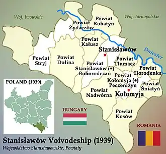 ![]() Location of Stanisławów Voivodeship (red) within the Second Republic of Poland (1938). | |||||||||